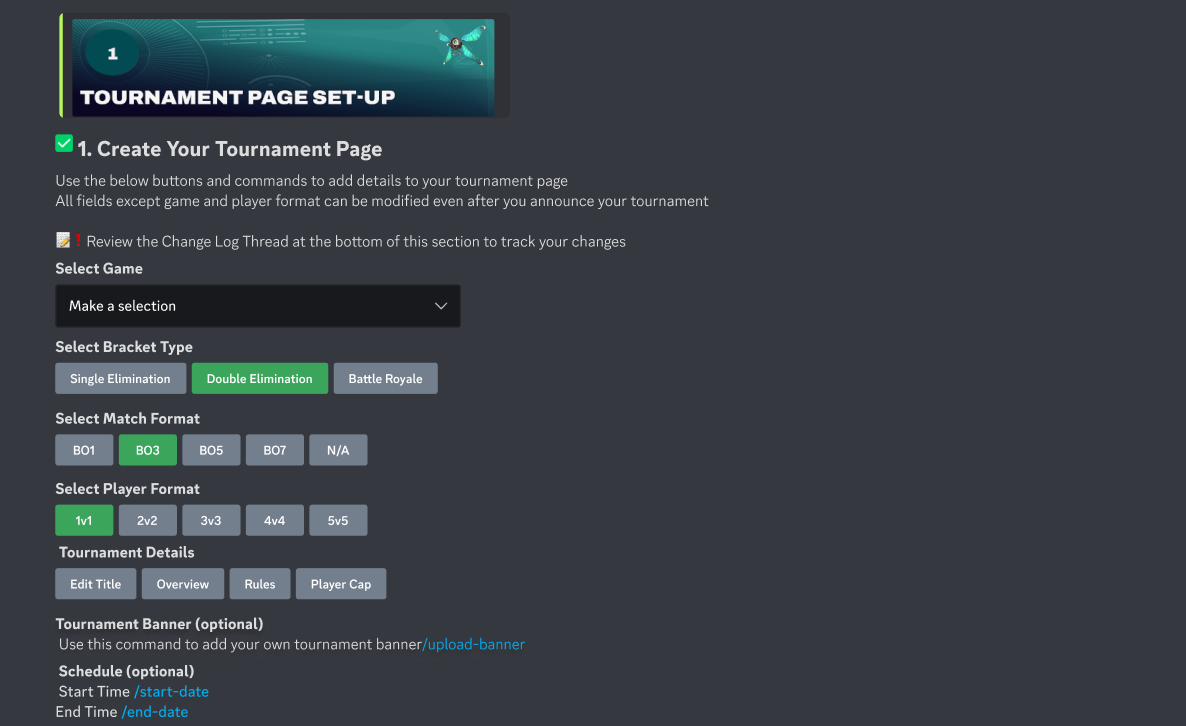 - Admin channel to modify your tournament web page and set-up your bracket