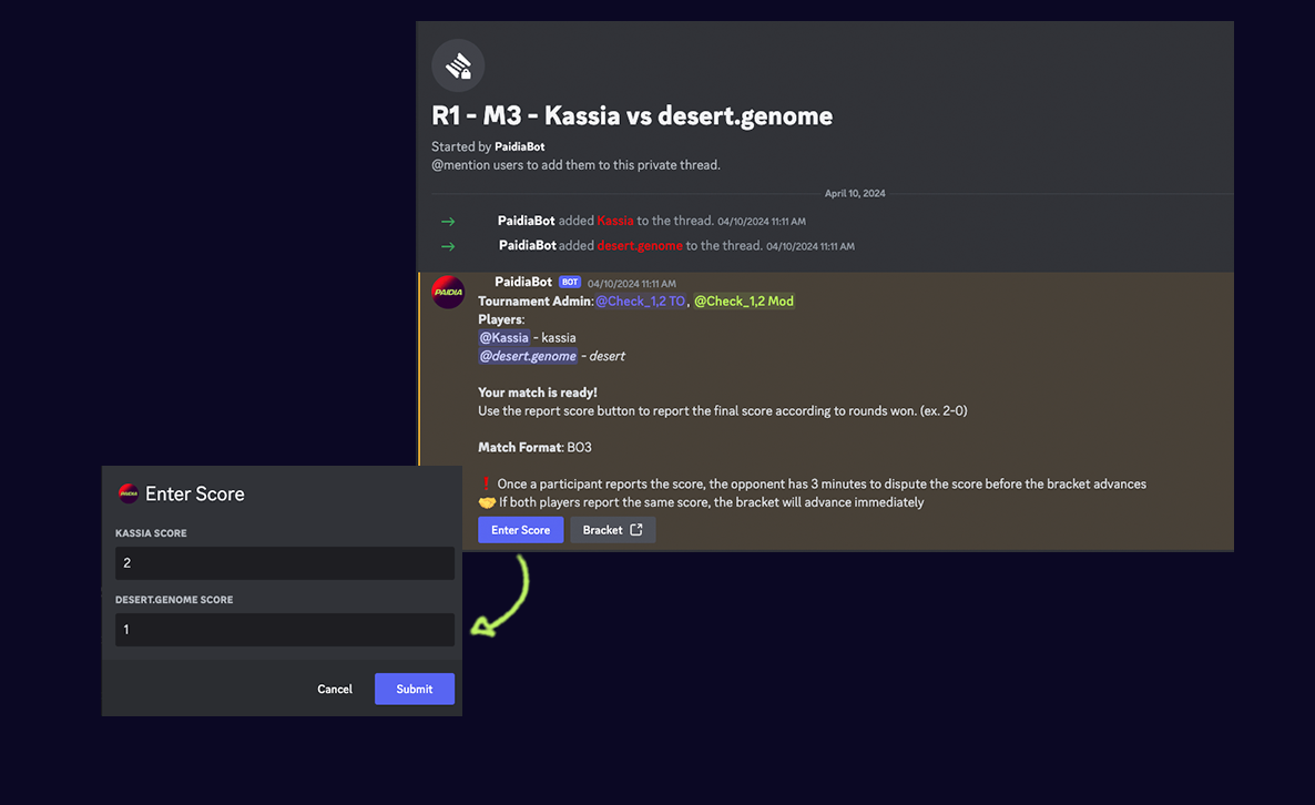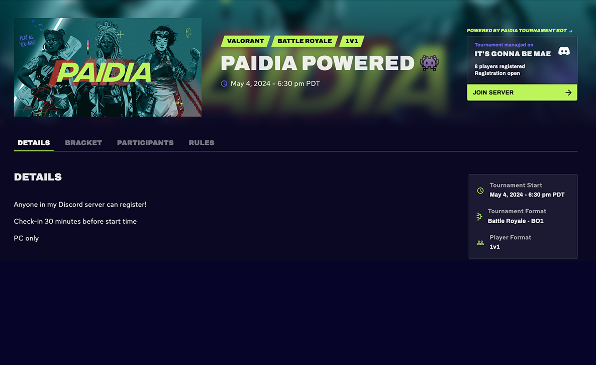 Paidia tournament management on Discord