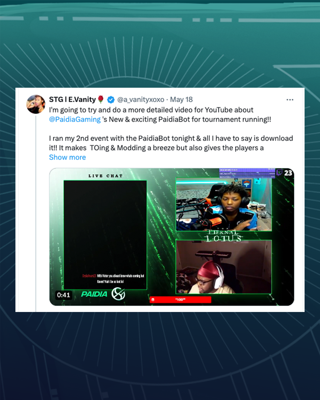 - Custom tournament page on paidiagaming.com